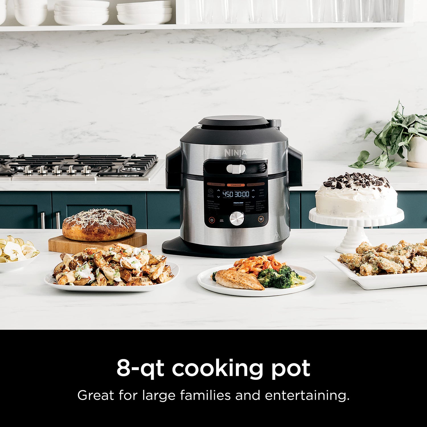 Ninja OL701 Foodi 14-in-1 SMART XL 8 Qt. Pressure Cooker Steam Fryer with SmartLid & Thermometer + Auto-Steam Release, that Air Fries, Proofs & More, 3-Layer Capacity, 5 Qt. Crisp Basket, Silver/Black