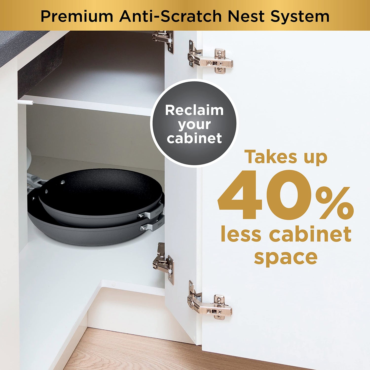 Ninja C52200 Foodi NeverStick Premium 2-Piece Fry Pan Set, Anti-Scratch Nesting Cookware, Hard-Anodized, Nonstick, Durable & Oven Safe to 500°F, Black
